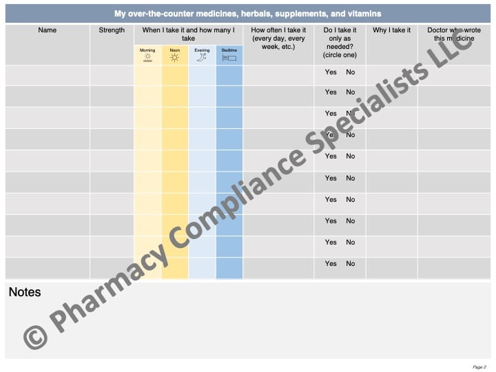 NOTE: This form is intended as an aid only and Pharmacy Compliance Specialists, LLC, shall not be held liable for damages resulting from the use or misuse of this product.