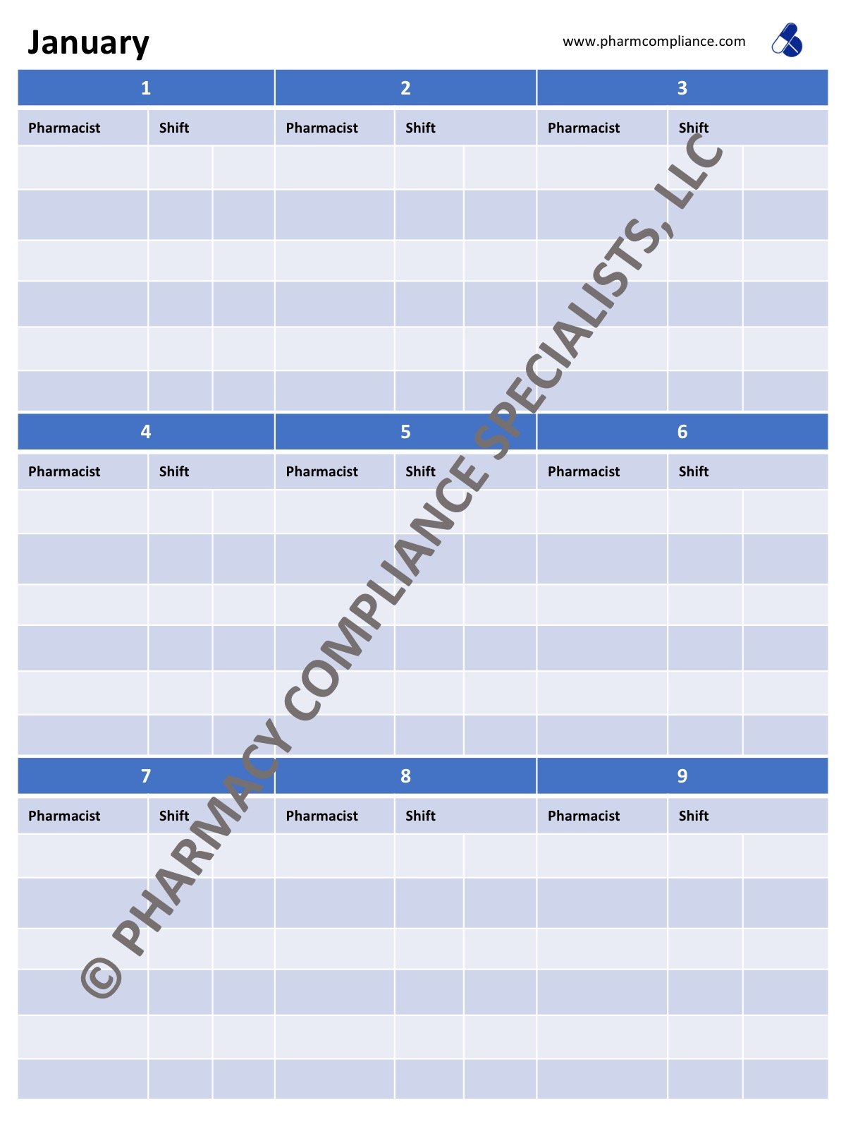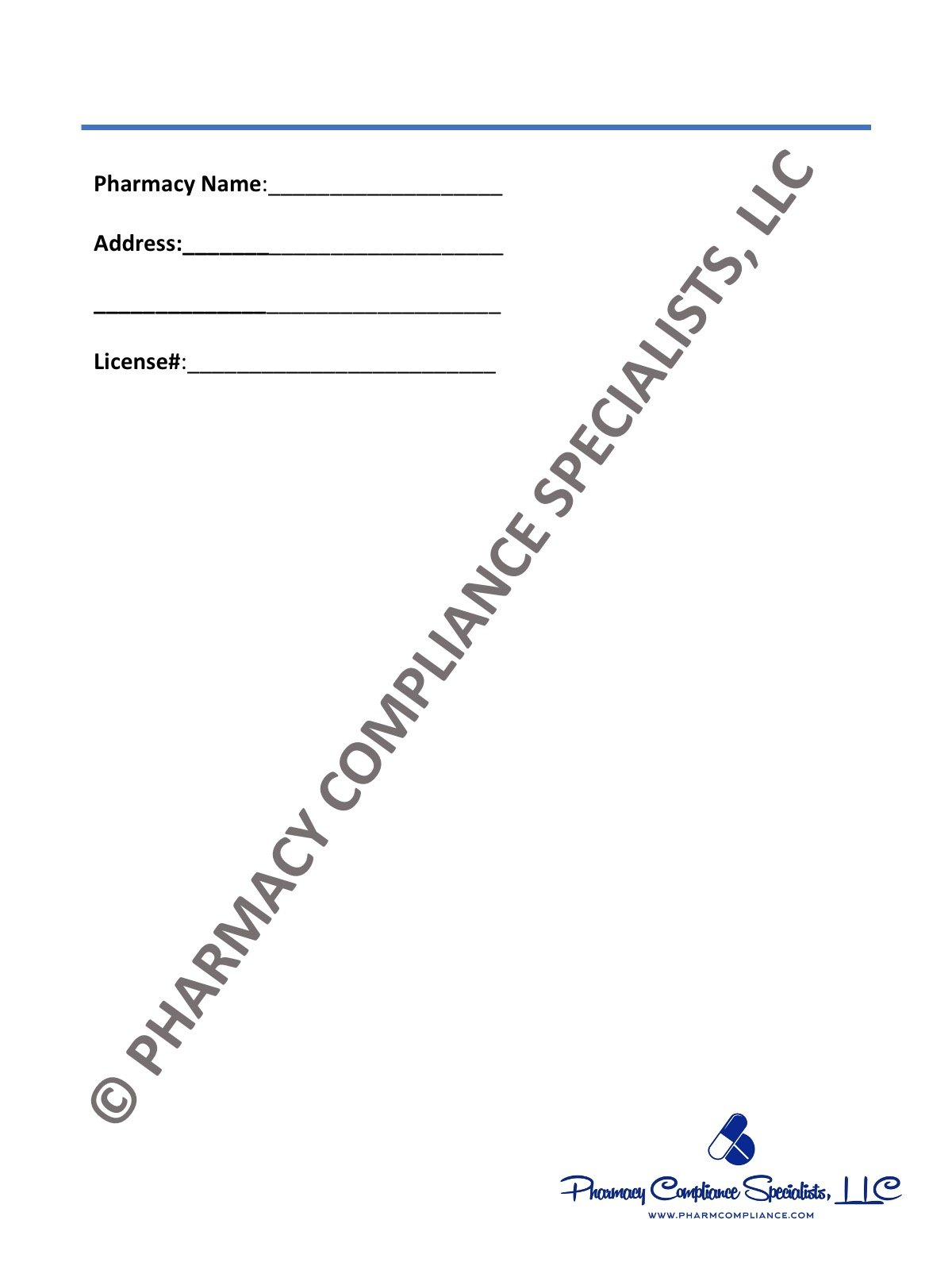 NOTE: This form is intended as an aid only and Pharmacy Compliance Specialists, LLC, shall not be held liable for damages resulting from the use or misuse of this product.