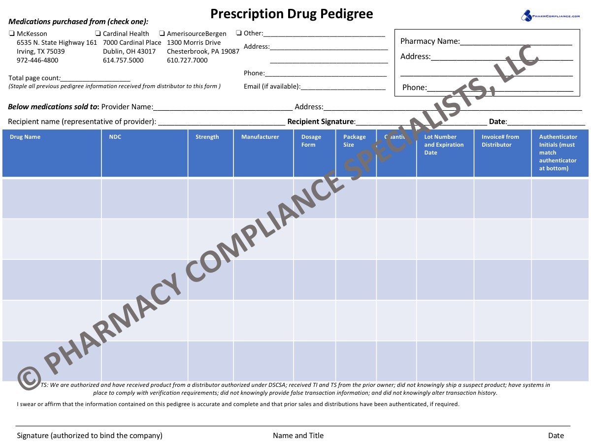 Prescription Drug Pedigree Form
